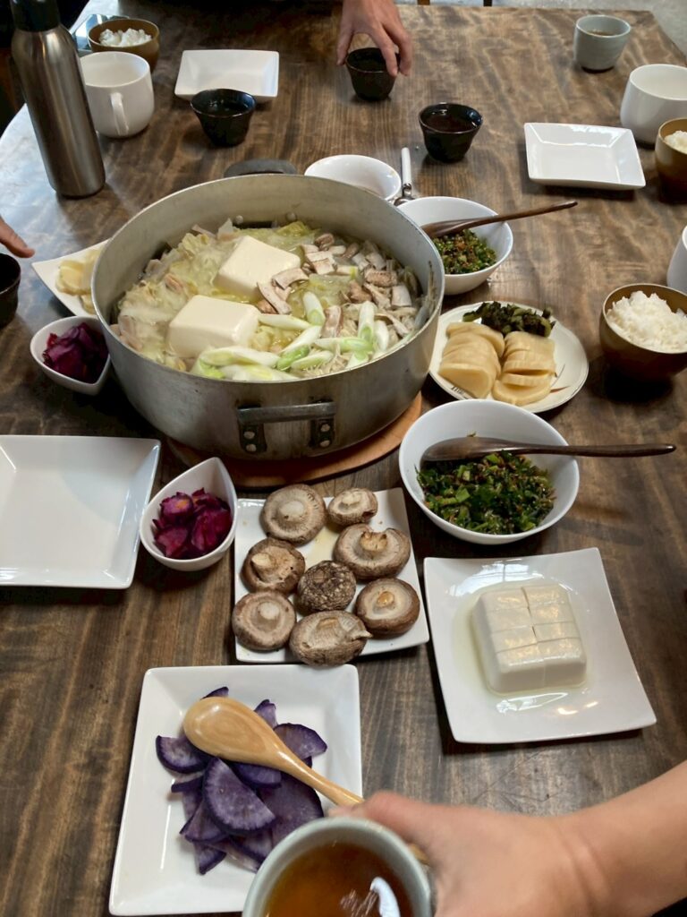 そして、みんなで持ち寄った食材と、搾りたての醤油を合わせてお昼です。