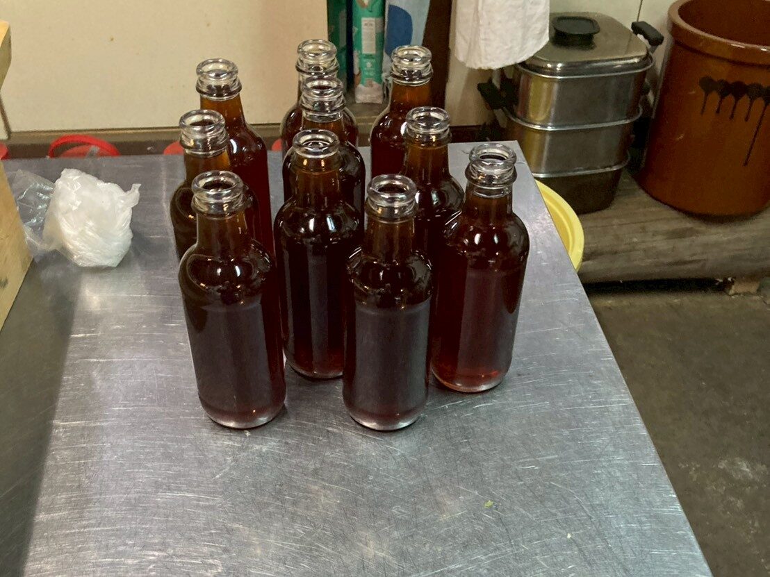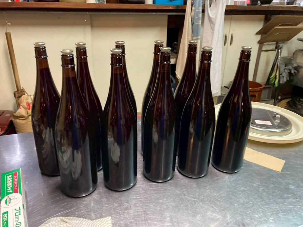 自重で絞った「一番絞り」と、火入れした醤油(一升瓶)を合わせて、