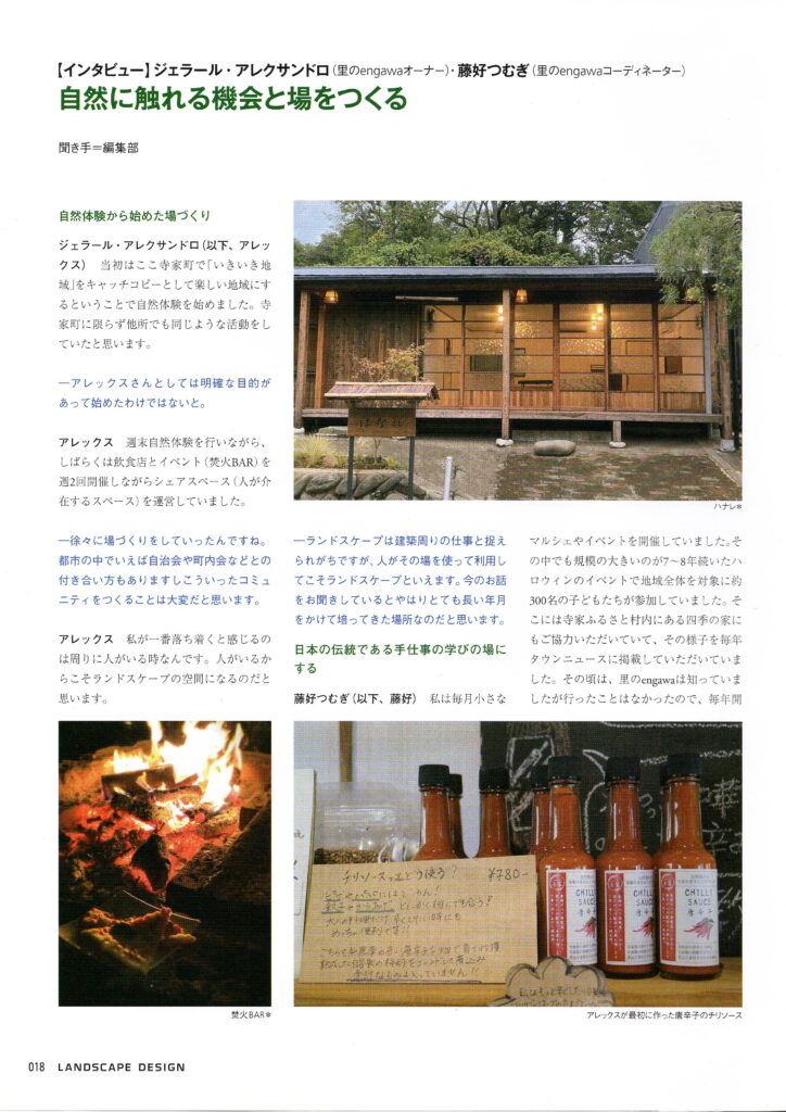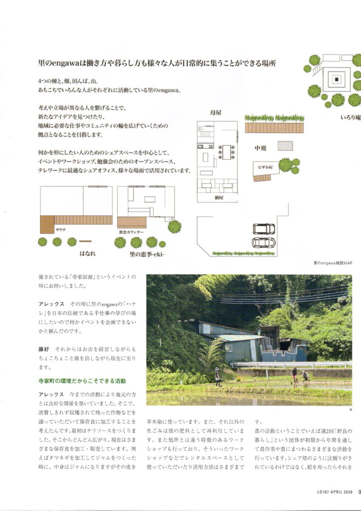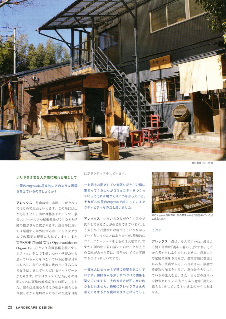 豊かで美しい暮らしの景観や環境を知的にデザインする方たちに役立つ、日本で唯一のランドスケープの専門雑誌、「LANDSCAPE DESIGN」にて、里のengawaを取材・掲載いただきました。