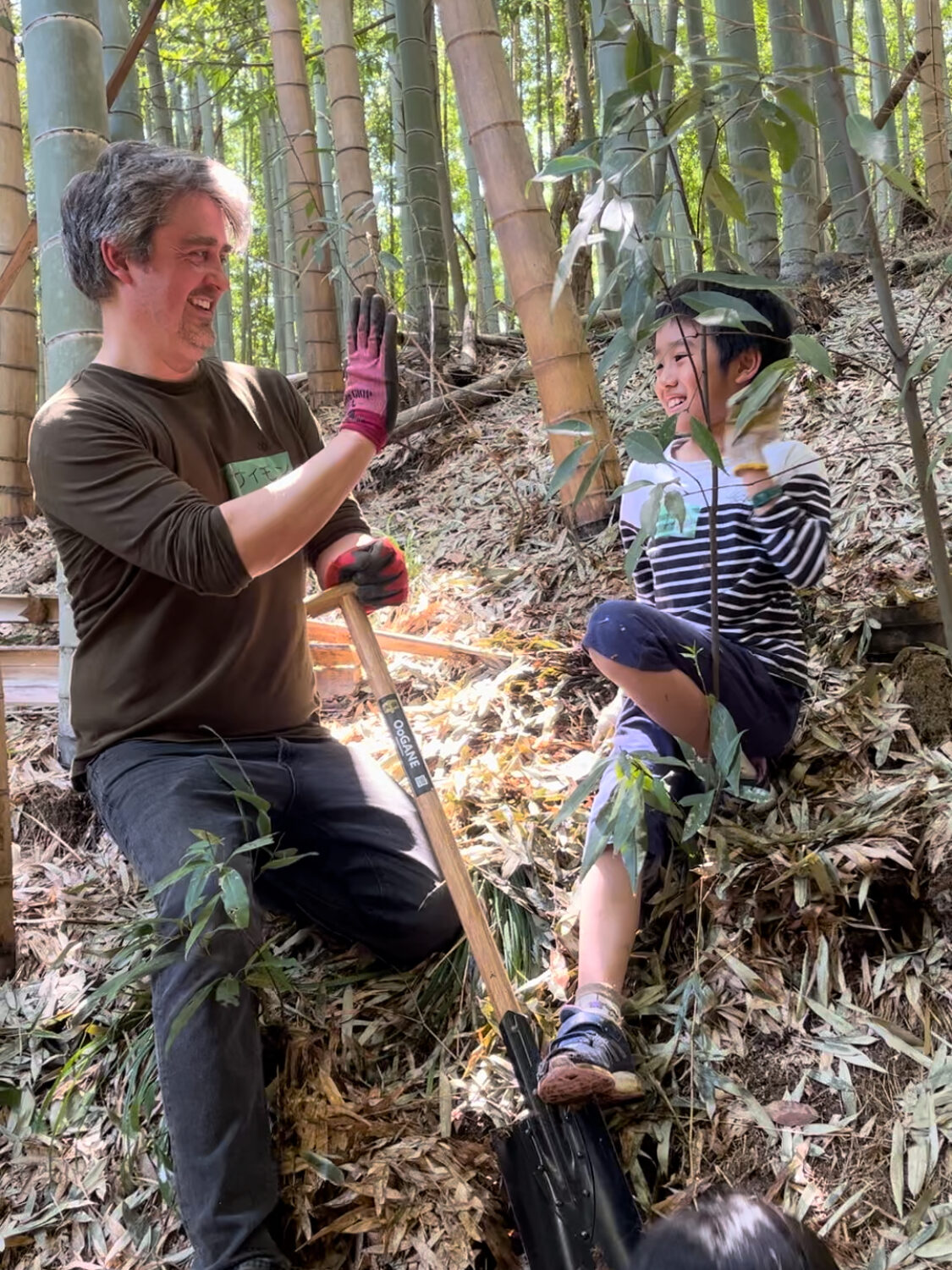 ▷大きな瞳を更に大きくして、タケノコ掘りの感動を話してくれたサイモンさん。