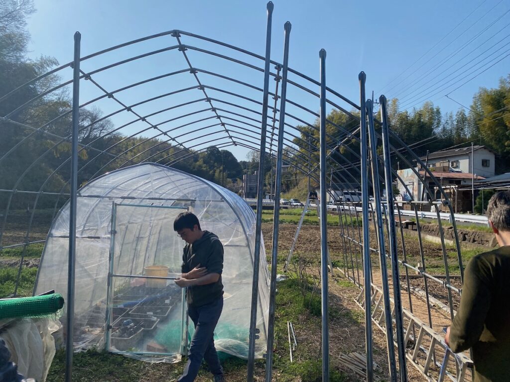 「ビニールハウスを、もっと大きくしています。お米のために!」